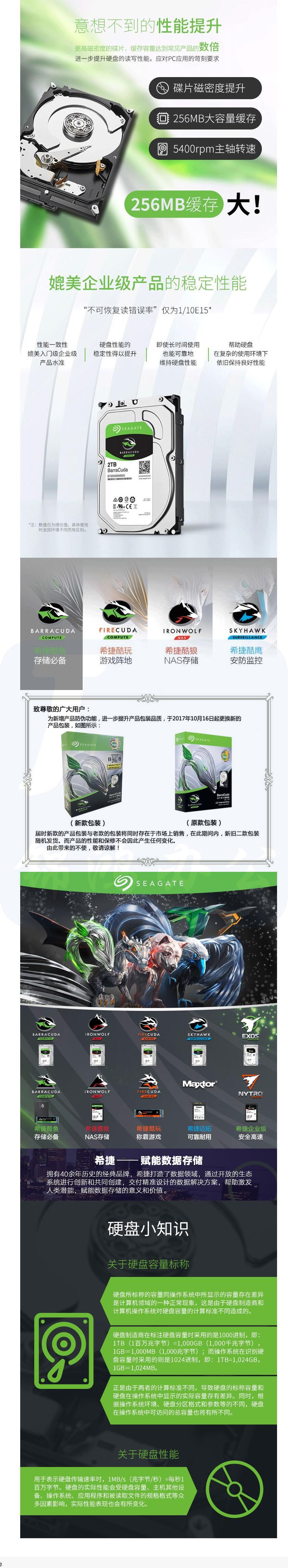 希捷(Seagate)2TB 256MB 5400RPM 台式机机械硬盘 SATA接口 希捷酷鱼BarraCuda系列(ST2000DM005)
