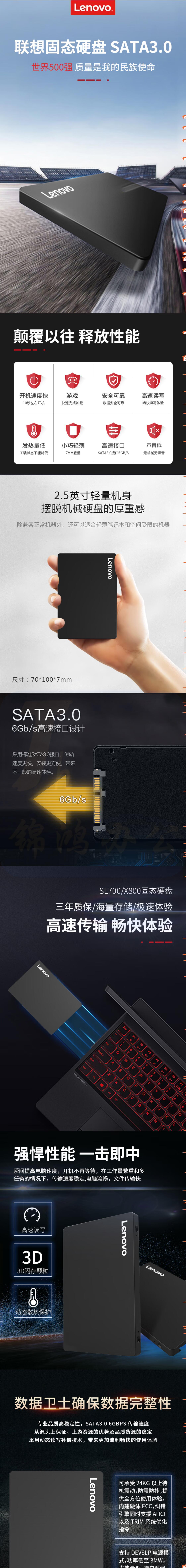 联想(Lenovo)X800系列 固态硬盘 SSD 台式机笔记本通用加装硬盘 SATA3接口 2.5英寸 512GB