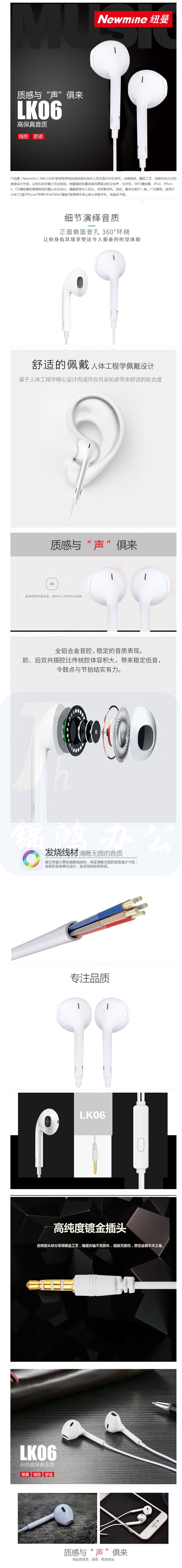纽曼(Newmine)NM-LK06 全兼容线控音乐手机耳机 白色
