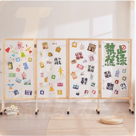 实木网格展示 宽50*高115三块装带轮子 货号:LJ