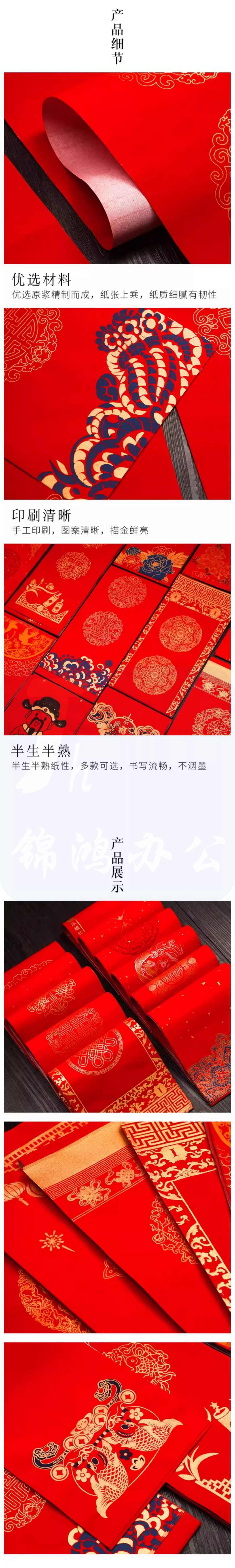 手写对联纸 空白春联纸 宫廷万花17*104cm (七言5副对联+5张横批) 货号:LJ