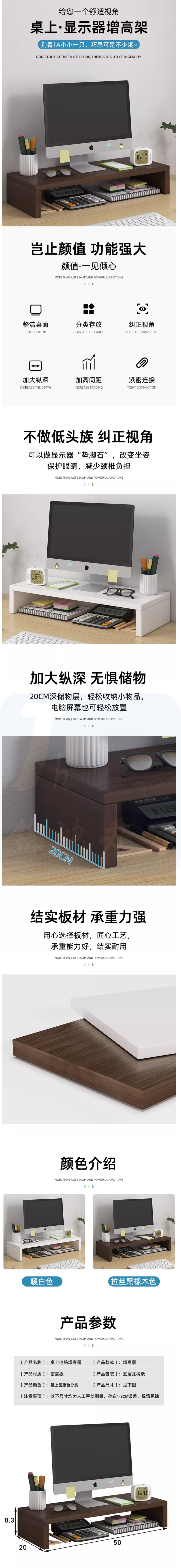 台式电脑显示器屏增高架 显示器托架 60*20*13cm 货号:LJ