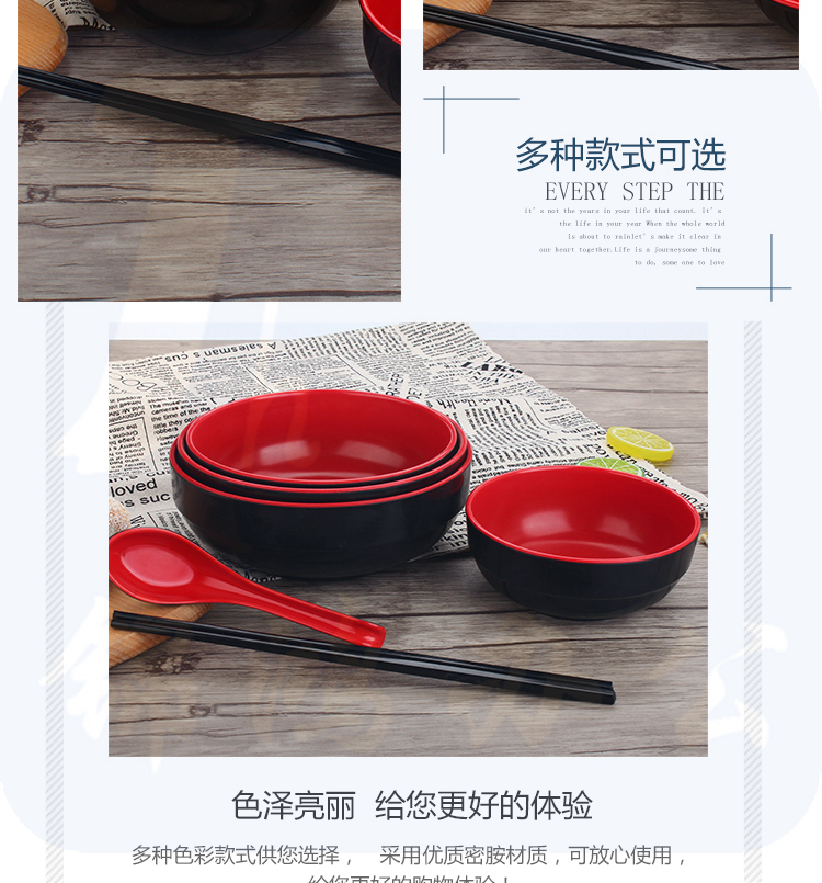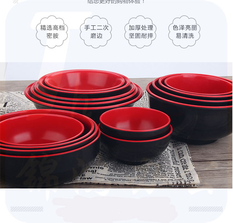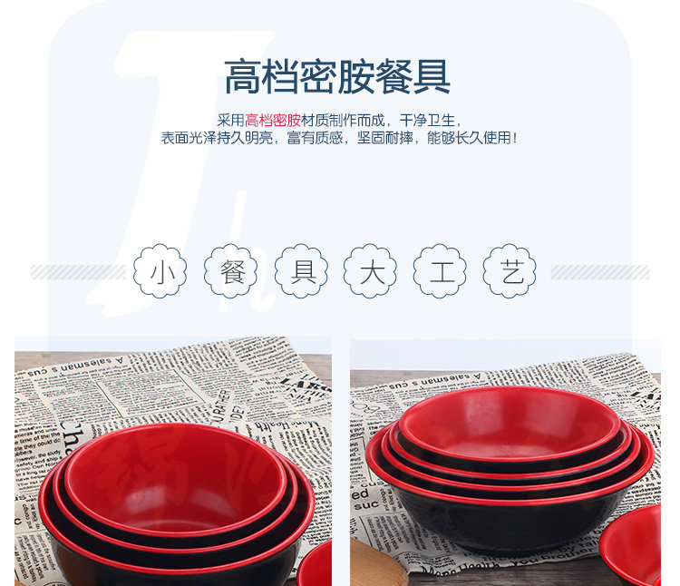 密胺餐具 7.4英寸 高沿碗 馄饨碗米线捞面汤面碗深碗日式拉面碗食堂饭店大碗黑红碗