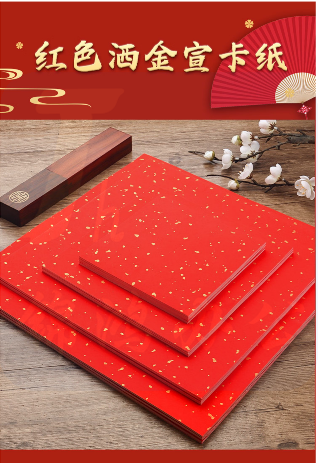 万年红洒金卡纸红色宣纸 38*38cm 10张/包 货号:LJ