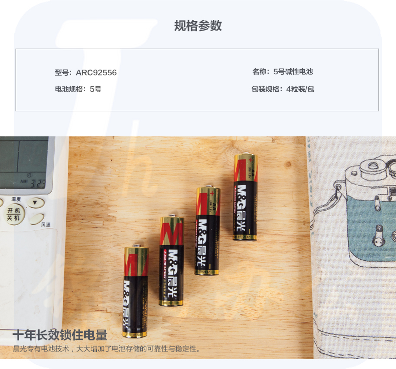 晨光 5号电池(4粒吸卡)ARC92556 无汞碱性电池