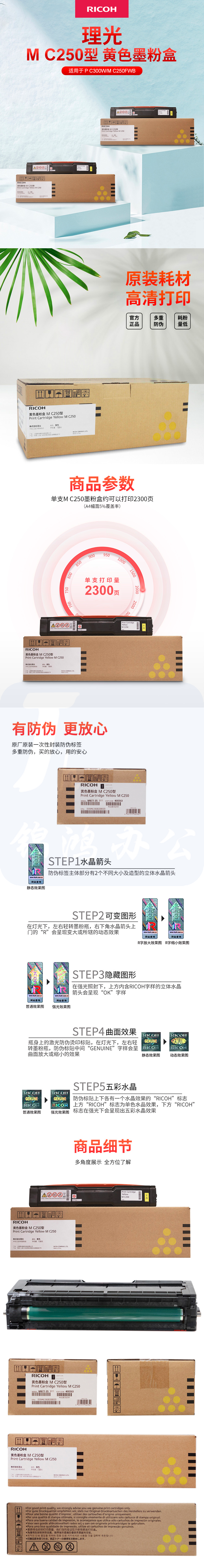 理光M C250型 黄色墨粉盒 适用于P C300W/M C250FWB