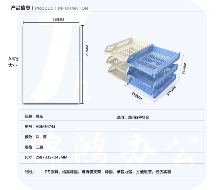 晨光(M&G)三层镂空收纳文件座 三层文件盘/文件框栏桌面文件置物架 ADM94743 (灰色)