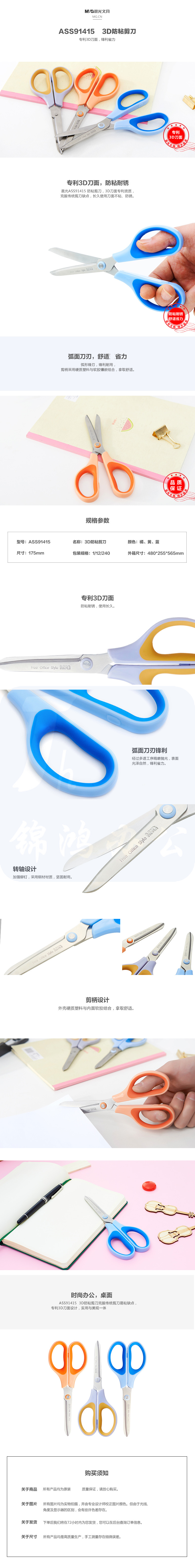 晨光(M&G)3D防粘剪刀 学生办公剪刀ASS91415 蓝黄橘颜色随机