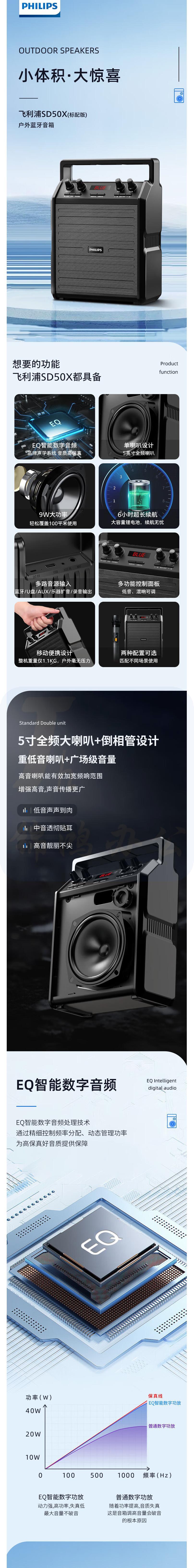 飞利浦 SD50X户外蓝牙音箱 音响+手持话筒