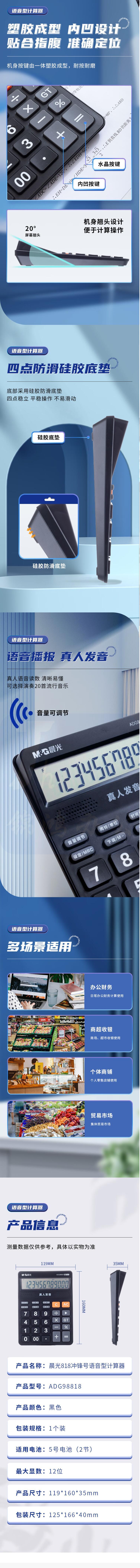 晨光(M&G)语音型计算器 818冲锋号12位大屏幕计算器 ADG98818
