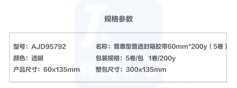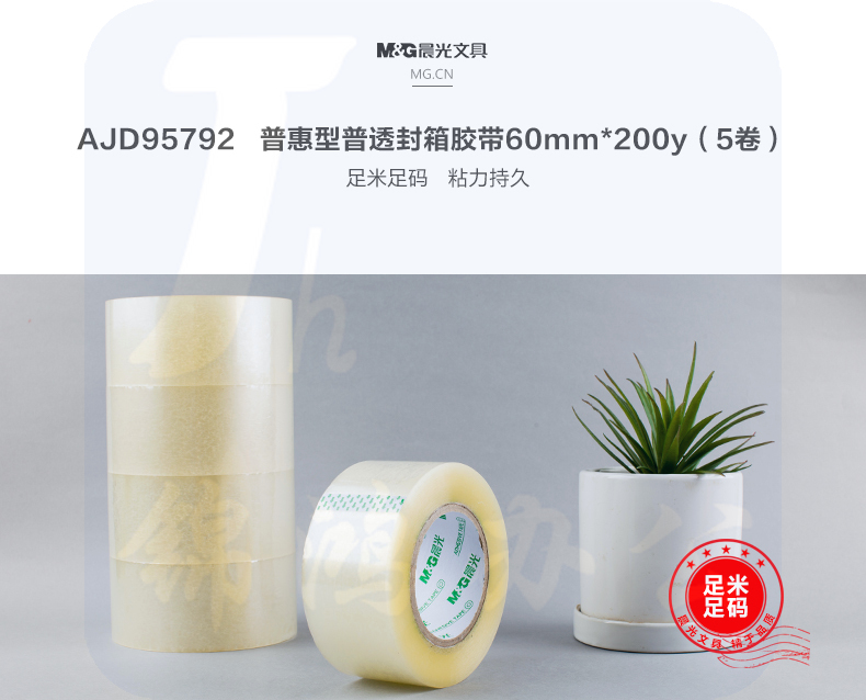 晨光 透明胶带封箱胶带60mm*200y 5卷装 AJD95792