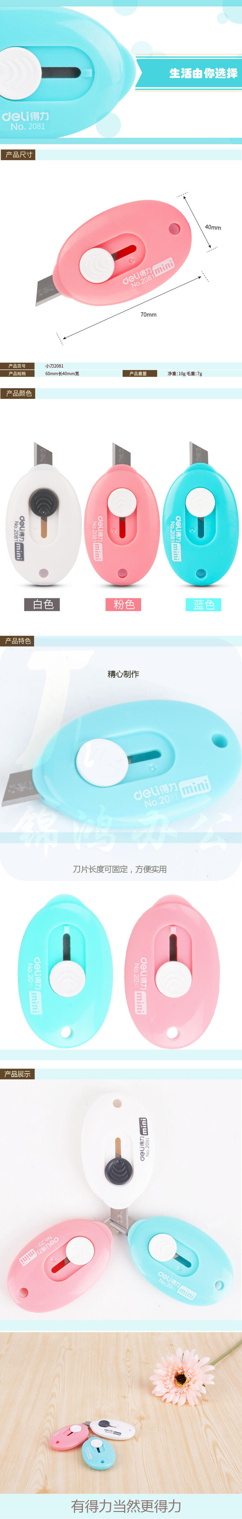 得力(deli)迷你随身美工刀 拆快递小刀 学生美术裁纸刀 2081颜色随机