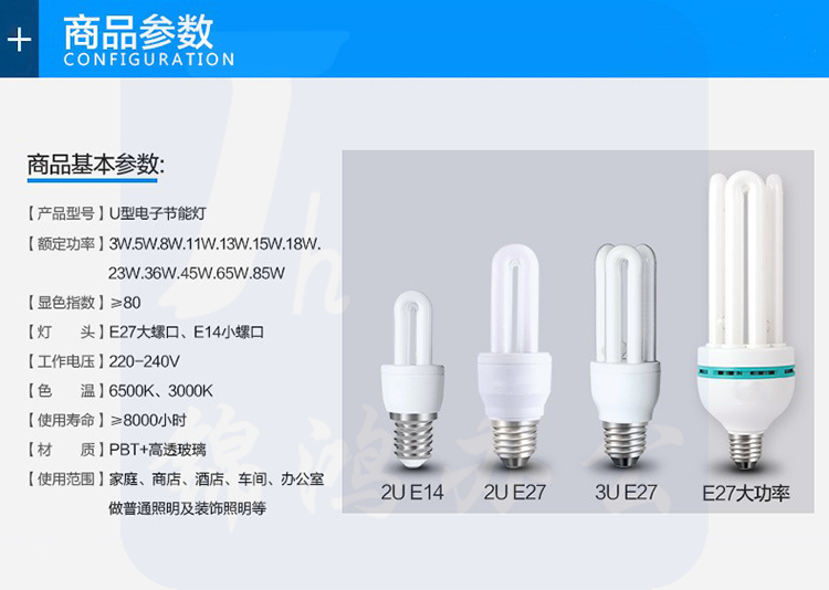 佛山照明 18W节能灯泡3U型三基色荧光E27螺口白光6500K