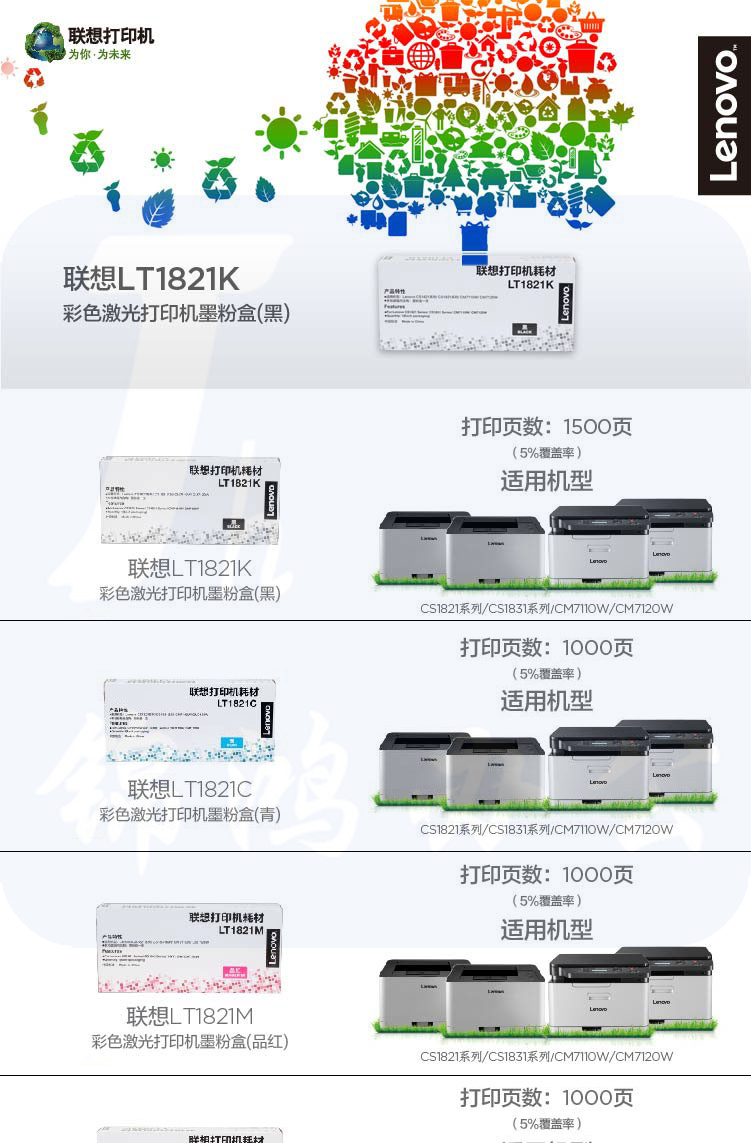 联想LT1821 青色 适用于CS1821/1831/CM7120W/7110W LT1821C (约1000页)