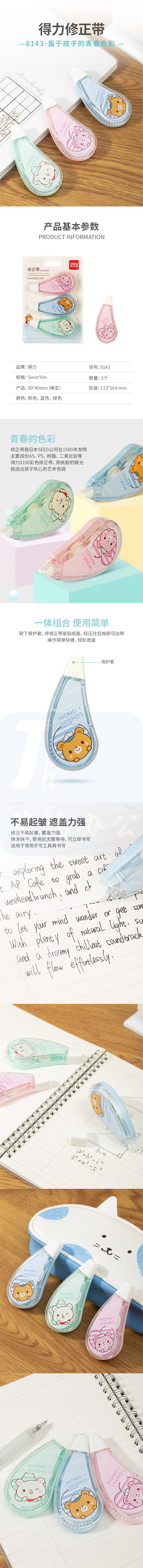 得力8143修正带涂改带 5mm*6米 组合套装 (3个/卡)