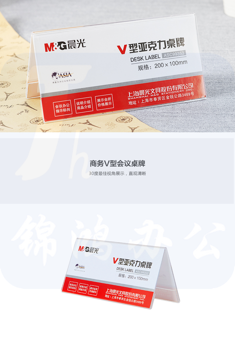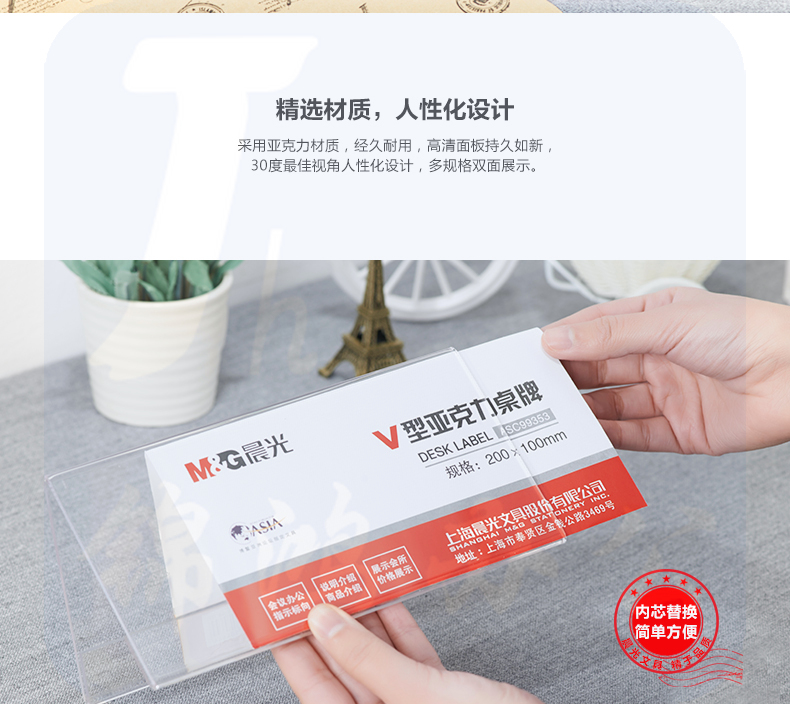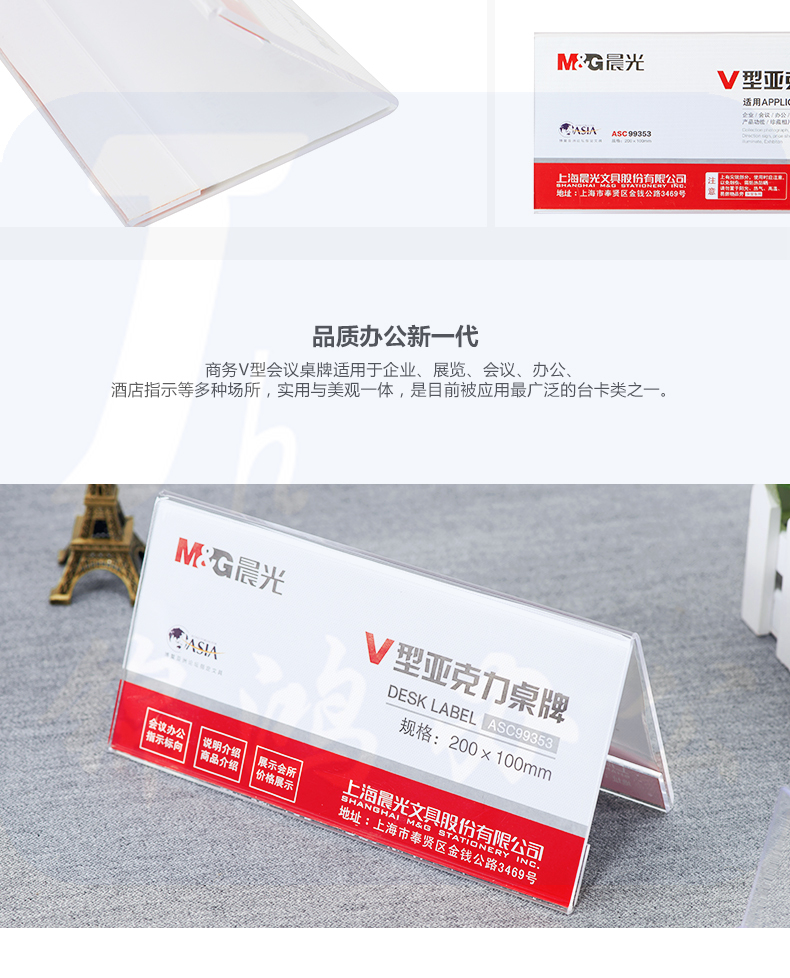 晨光 200*100mm 商务V型桌牌ASC99353