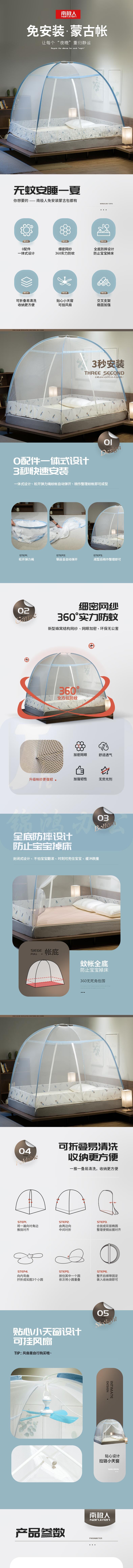 单人蚊帐 蒙古包蚊帐 约120*190*150cm