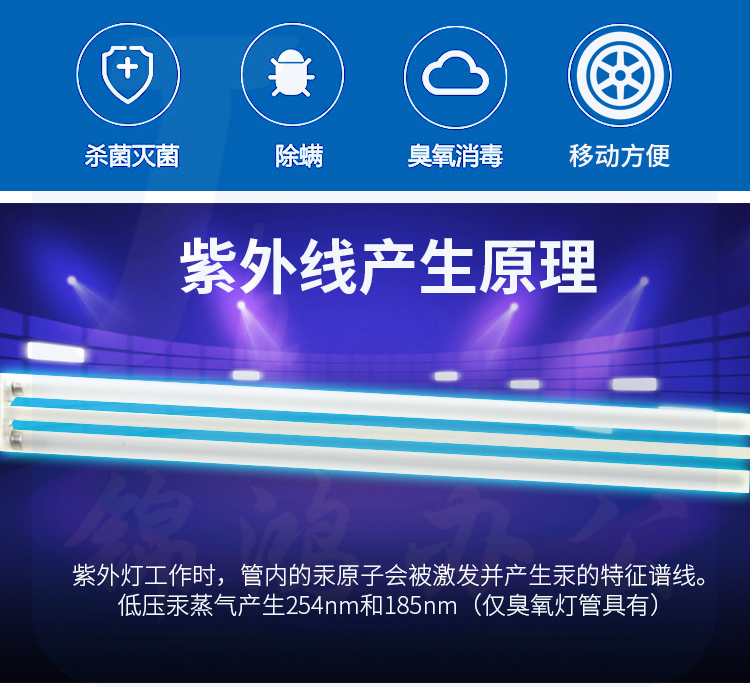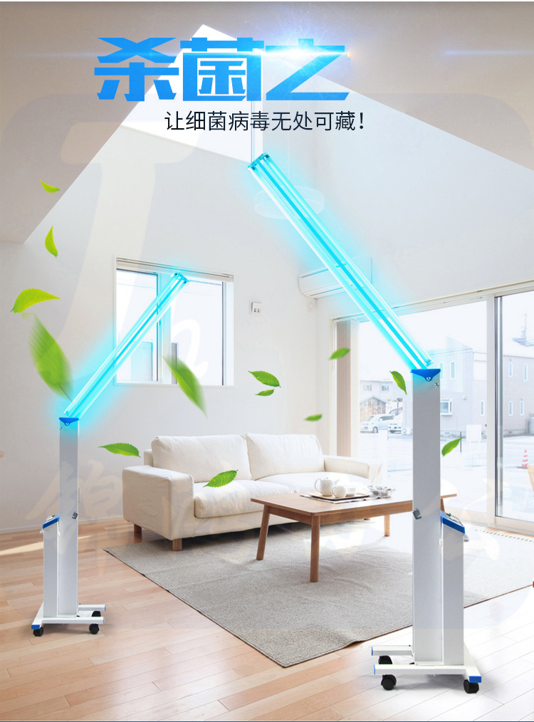 有臭氧紫外线杀菌灯,臭氧具有强氧化作用,可有效地杀灭细菌,臭氧的弥散性恰好可弥补由于紫外线只沿直线传播、消除有死角的缺点。室内无人时使用,开灯时避免直视灯光,消完毒需要开窗透风,每次杀毒不超过30分钟。