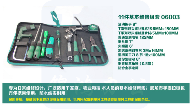 世达(SATA)11件基本组套/家用五金工具 基本组套 电工综合组套11件套装06003