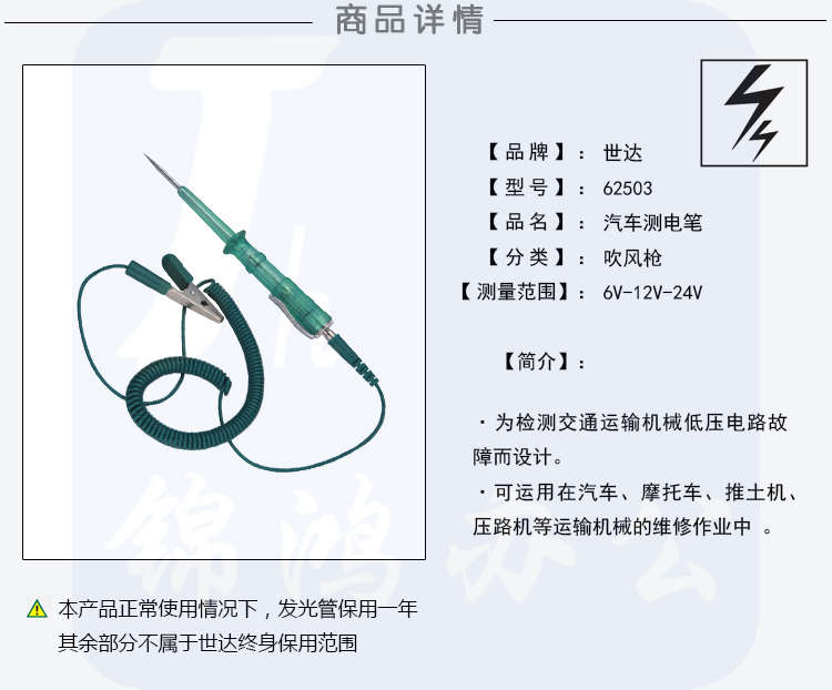 世达(SATA)汽车测电笔6V/12V/24V 62503