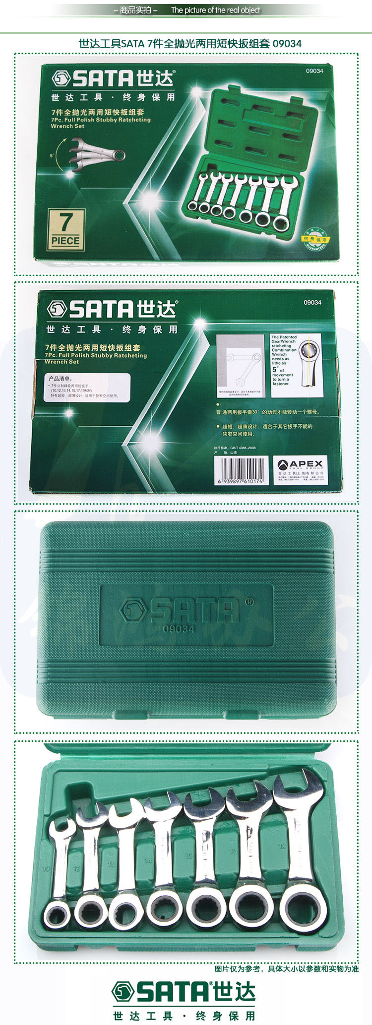 世达(SATA)7件全抛光两用短快扳组套货号09034
