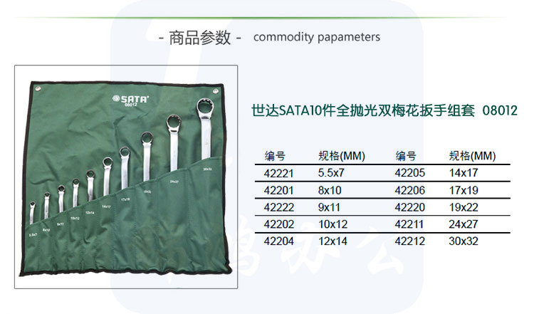 世达(SATA)10件全抛光双梅花扳手组套 货号08012