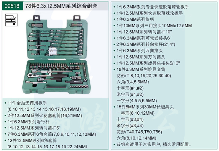 世达(SATA)78件6.3x12.5MM系列综合组套货号09518