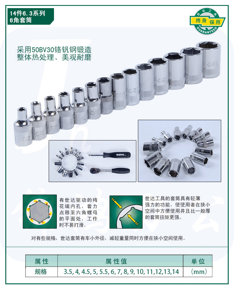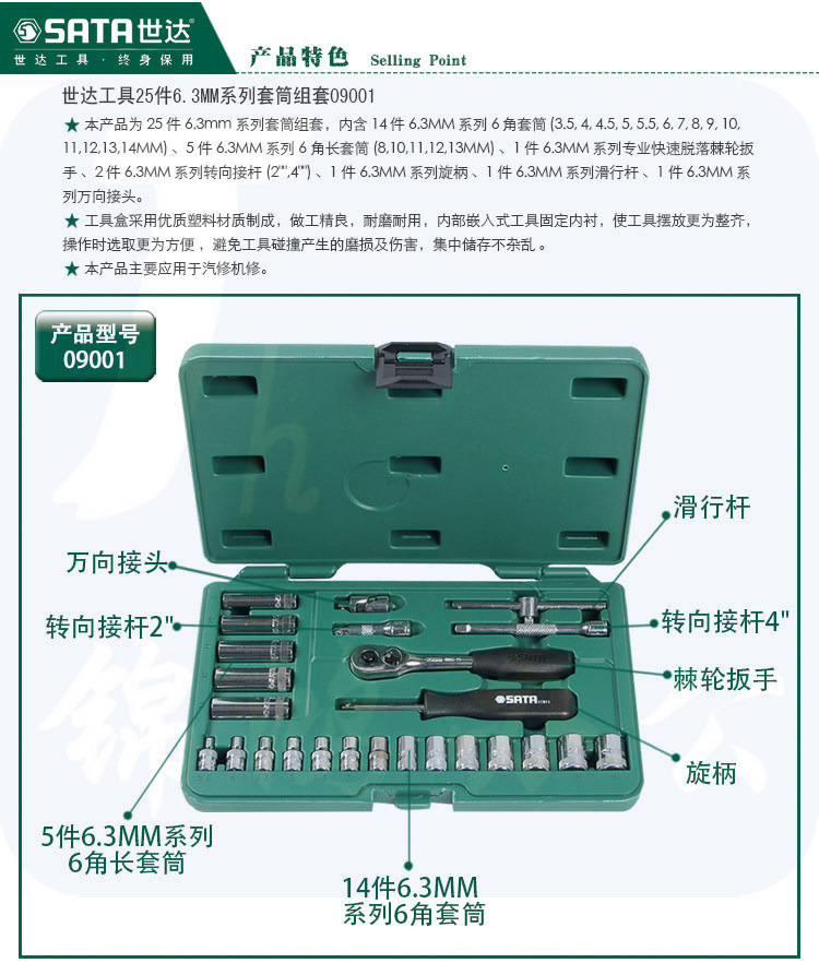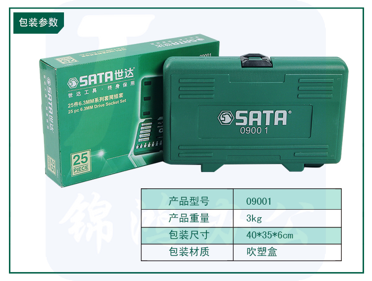 世达(SATA)25件6.3MM系列套筒组套货号09001