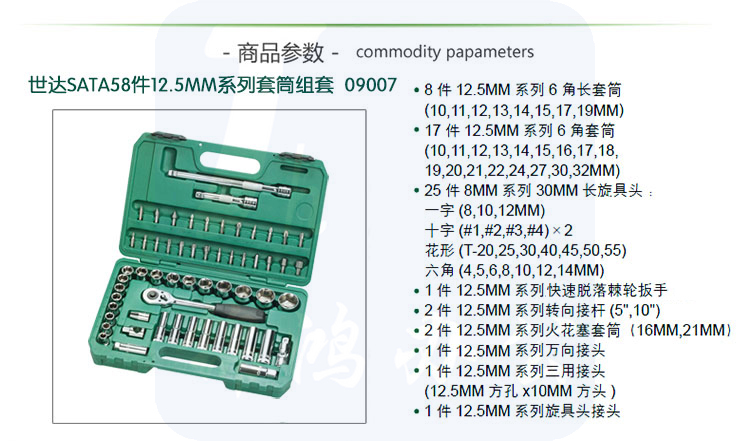 世达(SATA)58件12.5MM系列套筒组套 货号09007