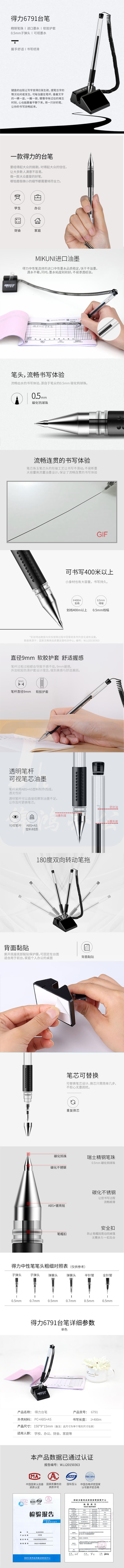 得力(deli)0.5mm黑色台笔 可粘贴180度旋转中性笔 子弹头签字笔6791