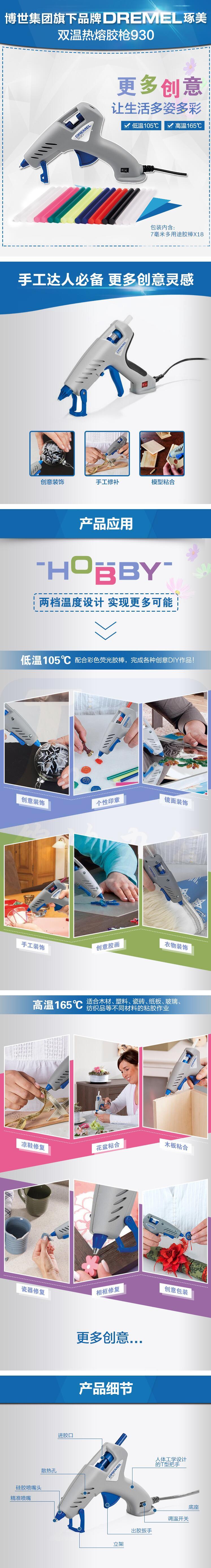 博世 930 双温热熔胶枪多用途胶棒胶条热熔器手工美缝工具 18根胶棒(7mm)套装