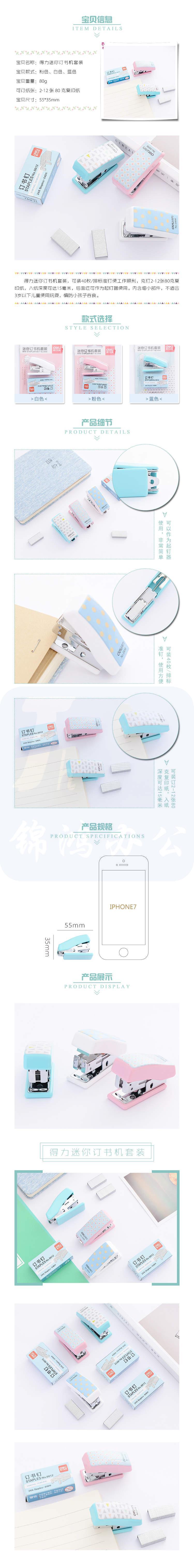 得力 订书机卡式套装(订书机+订书针) 12#钉 0456订 混色