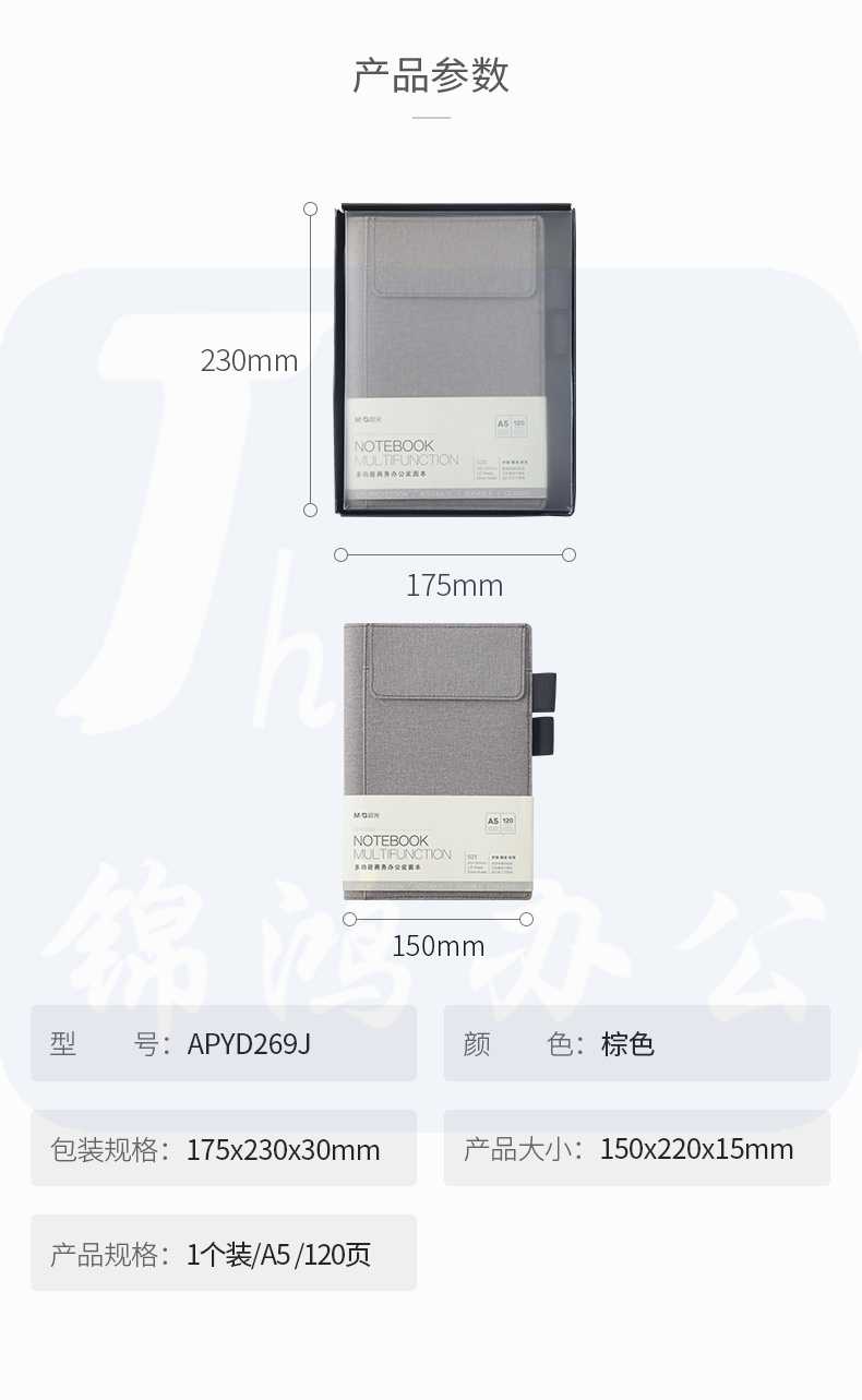 晨光 A5/120张灰色办公笔记本 120页APYD269J