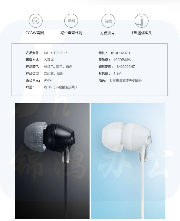 索尼(SONY) MDR-EX15LP 小巧入耳式耳机,佩戴舒适 半透明果冻色渐变机身 白色