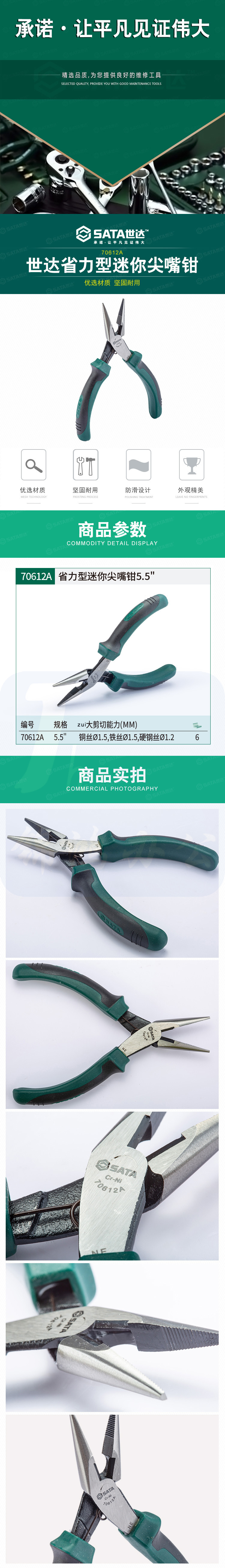 世达(SATA) 70612A 省力型迷你尖嘴钳5.5"