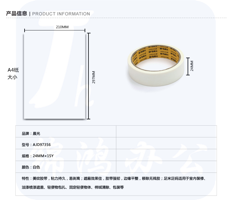 晨光 美纹纸胶带24mm*15y(13.71m/卷) 装修遮蔽纸 无痕纸贴膜纸 单卷装AJD97356