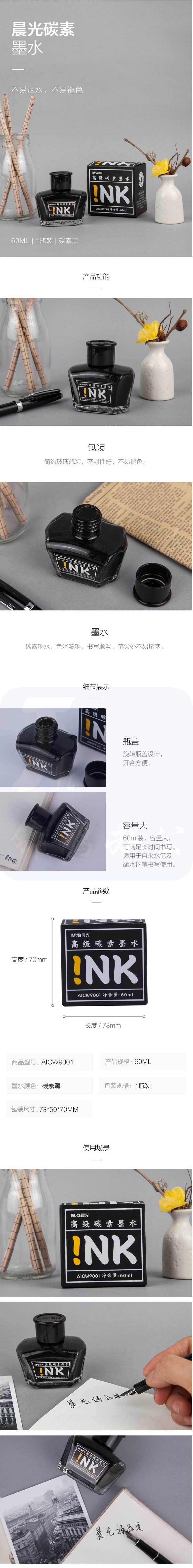 晨光(M&G)黑色60ml高级碳素墨水 大容量不堵钢笔墨水 单瓶装AICW9001