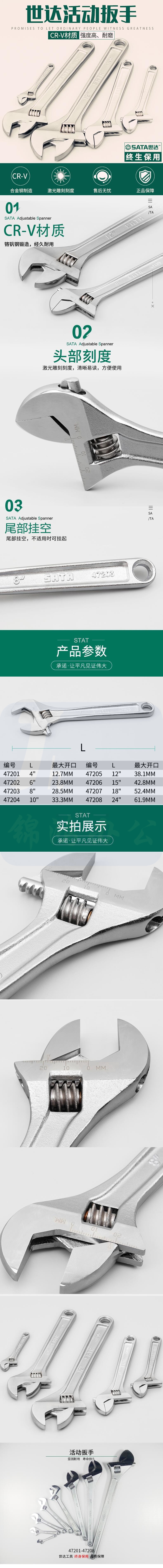 世达 活动扳手12" 活板子 47205