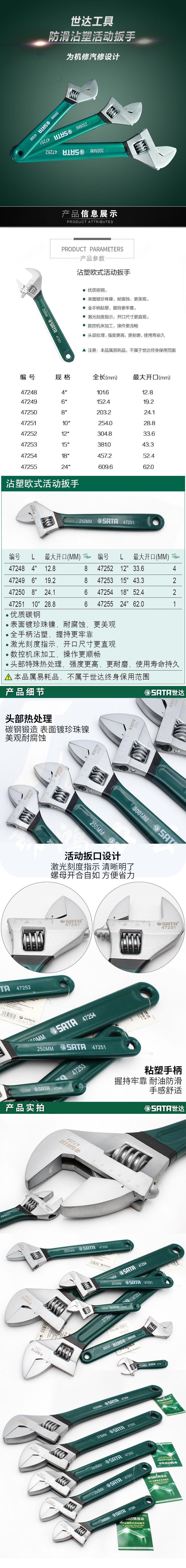 世达 47254 沾塑欧式活动扳手活扳手18"