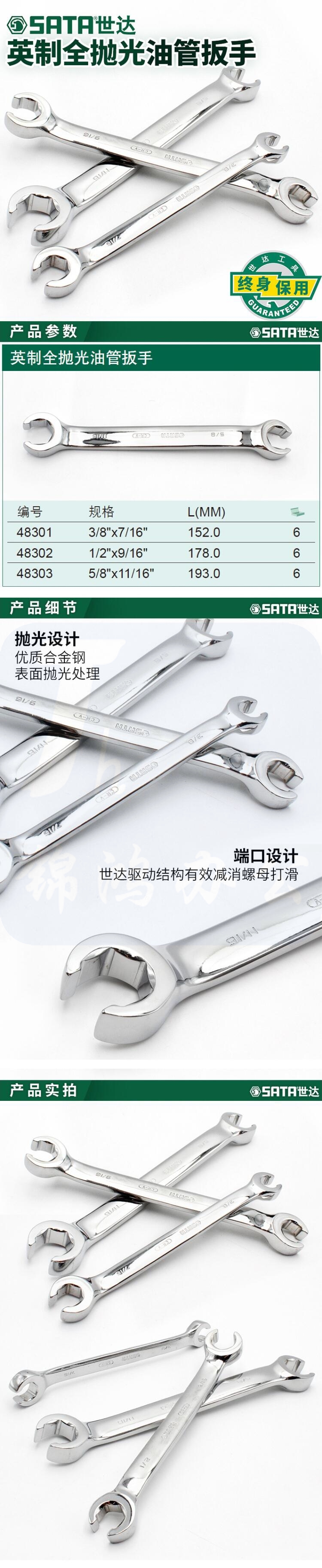 世达 英制全抛光油管扳手3/8"x7/16" 48301