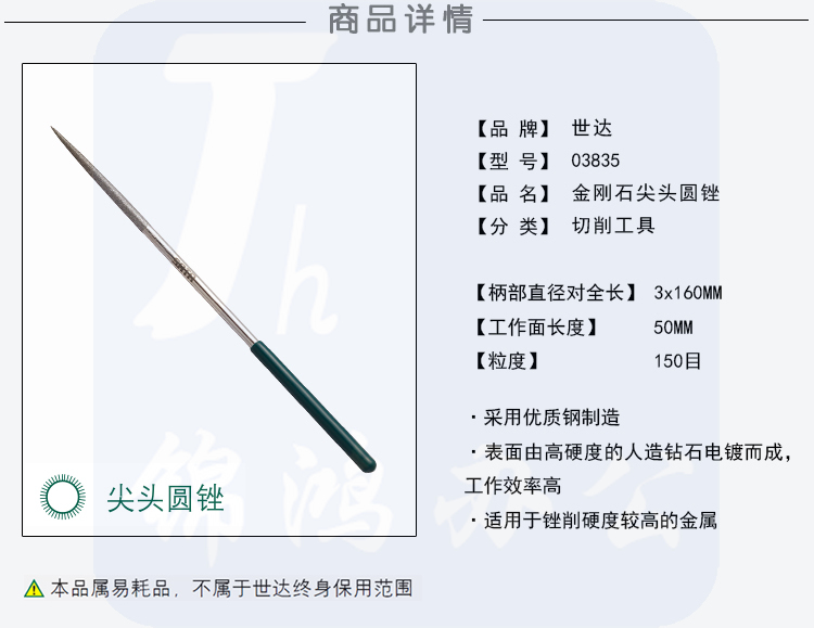 世达(SATA)金刚石尖头圆锉4x160MM/刀尖头圆锉金钢锉刀 03835