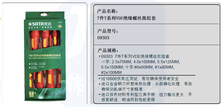 世达(SATA)7件T系列VDE绝缘螺丝批组套货号09303
