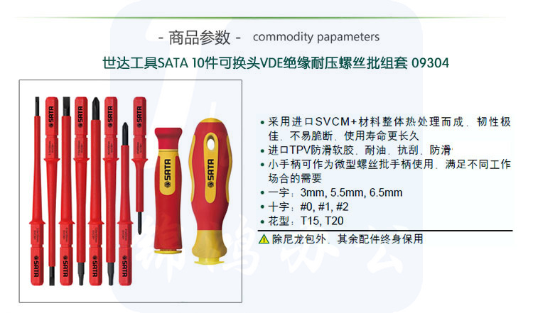 世达(SATA)10件可换头VDE绝缘耐压螺丝批组套货号09304