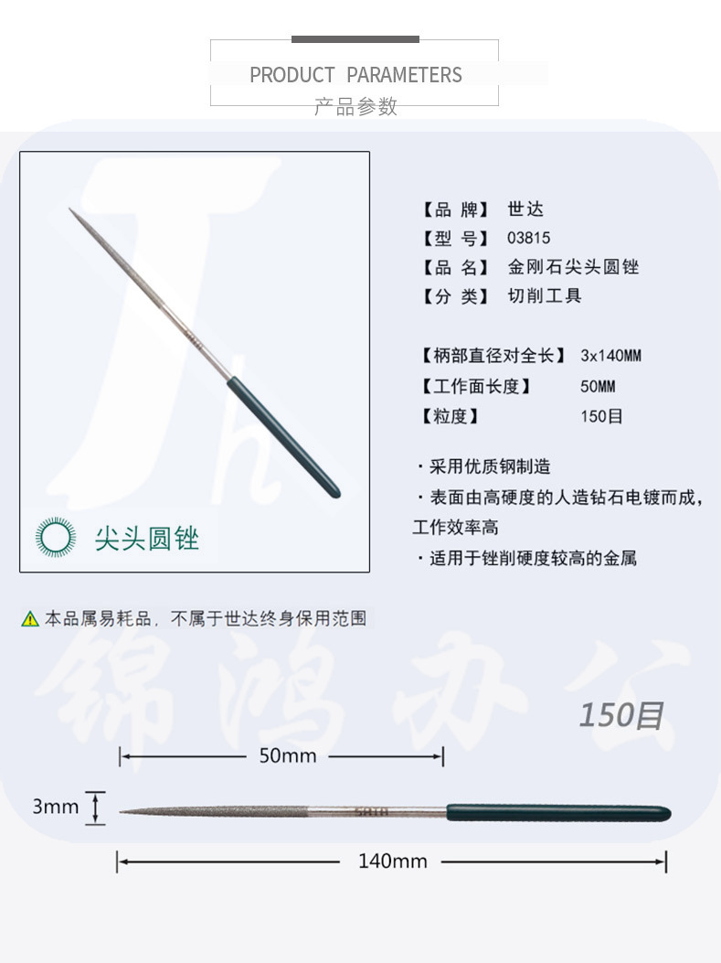 世达(SATA)金刚石尖头圆锉3x140MM / 尖头圆锉挫刀钢锉刀合金矬子 打磨工具03815