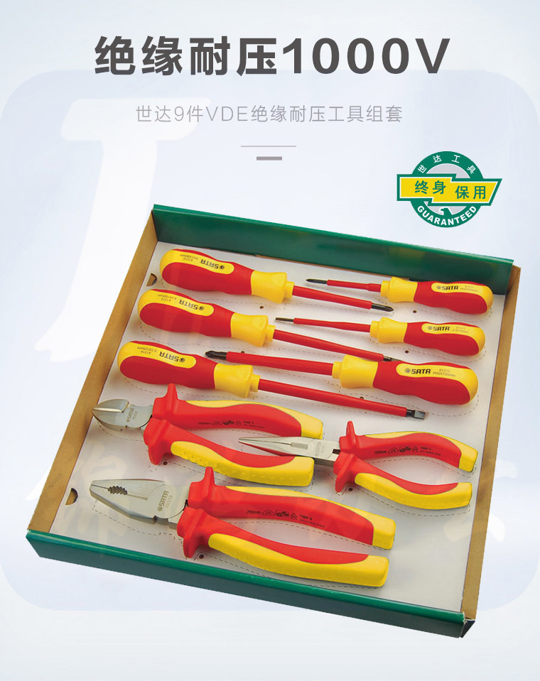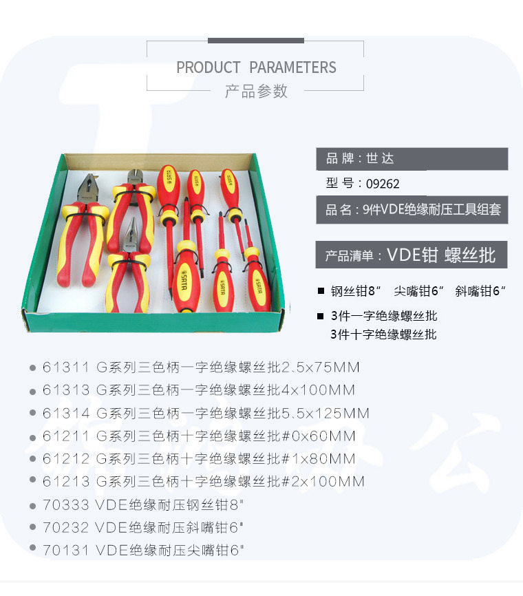 世达(SATA)9件VDE绝缘耐压工具组套货号09262