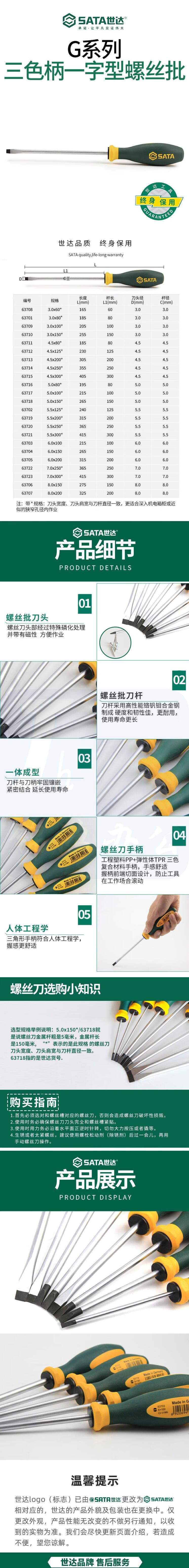 世达 63705双色柄一字形螺丝批6x200MM一字改锥