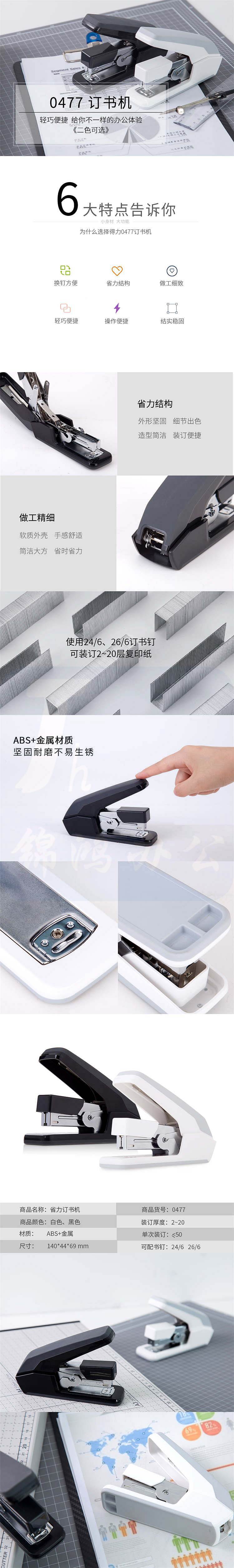 产品特性:使用24/6、26/6订书钉,可装订2~20层复印纸