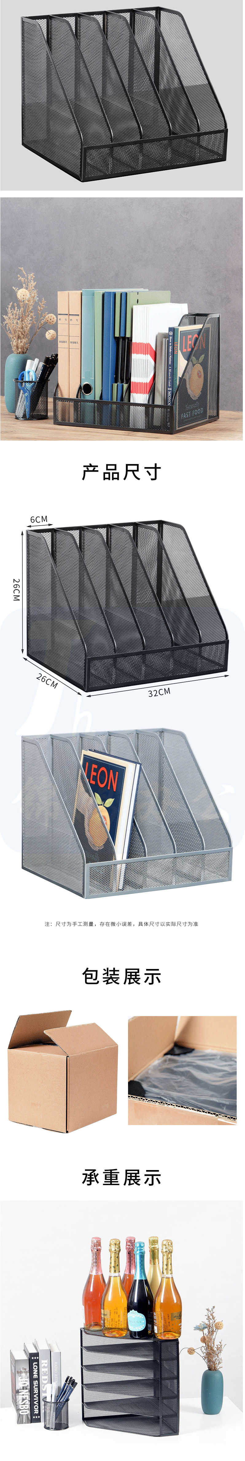 五联镂空金属文件筐 文件栏 资料文件框 五联黑色 货号:WY