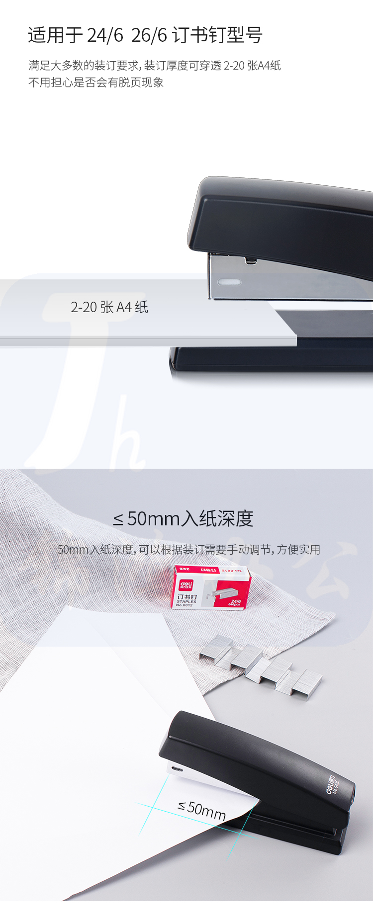 得力 订书机套装0354 订书机+起订器+书钉一盒型号:黑色