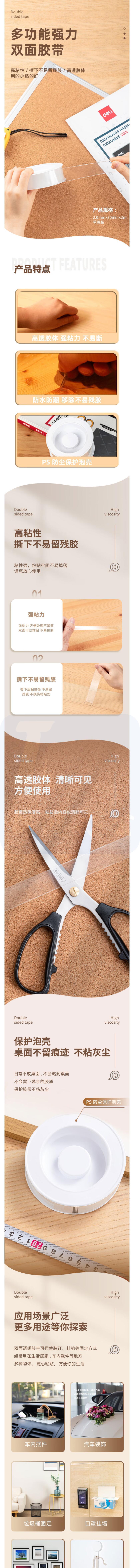 得力(deli)30mm*2m纳米强力魔力胶带 海报固定贴 无痕双面胶加厚款 JL521